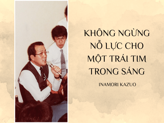 Từ khi Kyocera tiếp tục phát triển, trưởng thành thuận lợi, và bất ngờ là bản thân tôi cũng được đánh giá cao, tôi luôn ý thức mạnh mẽ về việc phản tỉnh và xem đây như là công việc hằng ngày.