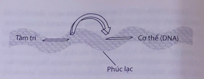 Biểu đồ này cho thấy mối liên hệ giữa tâm trí và cơ thể giống như một đài phát thanh: tâm trí đang phát ra các xung động của trí thông minh, ADN tiếp nhận chúng và hạnh phúc là sóng mang. Trên giấy tờ, ba yếu tố này phải được tách biệt, nhưng trên thực tế chúng hoàn toàn hợp nhất. Thông điệp, người đưa tin và người nhận là một. Tất nhiên, chúng ta đã xem xét mối liên hệ giữa tâm trí và cơ thể hàng chục lần trước đây, nhưng “chúng ta chưa có ‘chất keo’ giữ cho tâm trí và cơ thể không bay theo các hướng riêng biệt – đó là hạnh phúc.