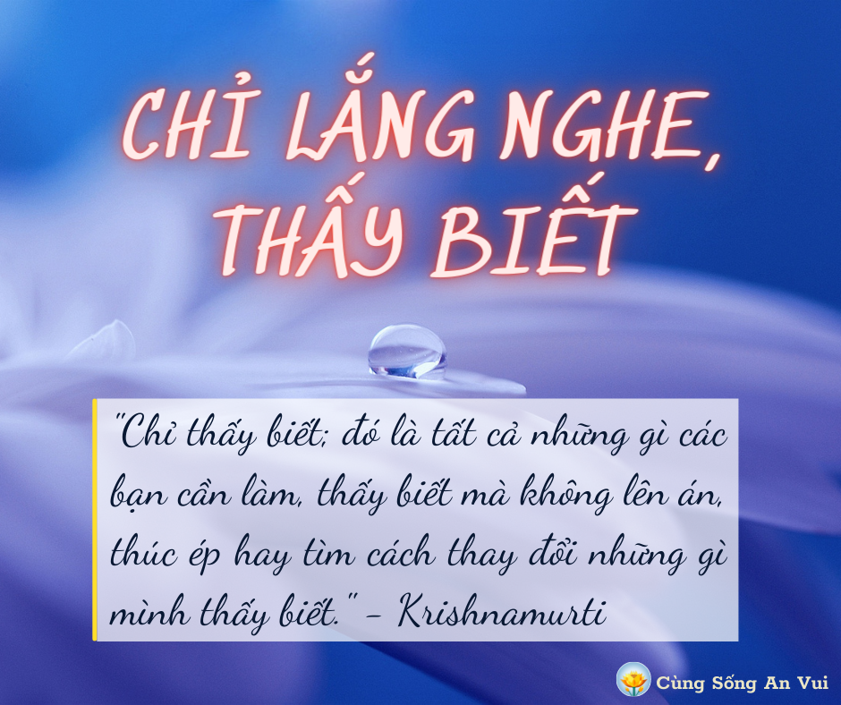 Không biết các bạn có để ý rằng tâm, toàn thể cơ cấu của bộ óc, phải bận rộn với một cái gì đó – chuyện tình dục, vấn đề phải giải quyết, xem truyền hình, xem đá bóng, đi nhà thờ. Tại sao tâm phải bận rộn như thế? Nếu tâm không bận rộn, có phải bạn cảm thấy bất an, và sợ không có gì để suy nghĩ? Bạn cảm thấy trống trải, có phải thế không? Bạn cảm thấy lạc lõng, bạn bắt đầu nhận ra mình là gì, và có một nỗi cô đơn thăm thẳm bên trong. Để tránh nỗi cô đơn thăm thẳm với tất cả ray rứt của nó, tâm bắt đầu lải nhải và bận rộn với bất cứ gì ngoại trừ sự không bận rộn. Thế là sự bận rộn được tạo ra. Nếu ta không bận rộn với những chuyện bên ngoài như nấu ăn, rửa chén, lau nhà, vân vân, thì tâm bắt đầu lên tiếng: “Ta cô đơn quá, làm sao ta vượt qua nỗi cô đơn đây; hãy để ta nói về nỗi cô đơn, ta thật khốn khổ làm sao!” – thế là tâm lại bắt đầu lải nhải. Nhưng tại sao tâm lải nhải? Thử đặt câu hỏi. Tại sao tâm bạn luôn luôn lải nhải, không một lúc nào im lặng, không một lúc nào được hoàn toàn tự do, không bận rộn một chuyện gì?