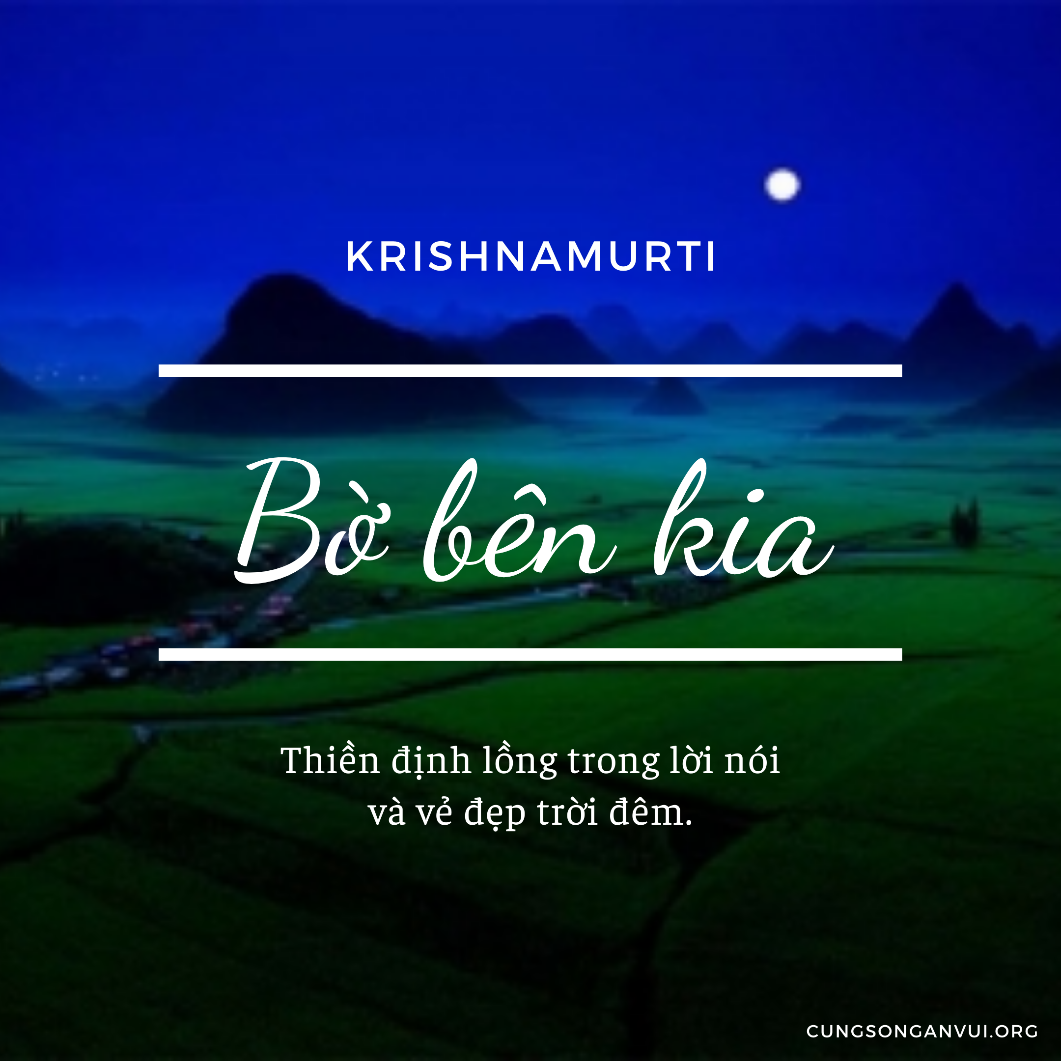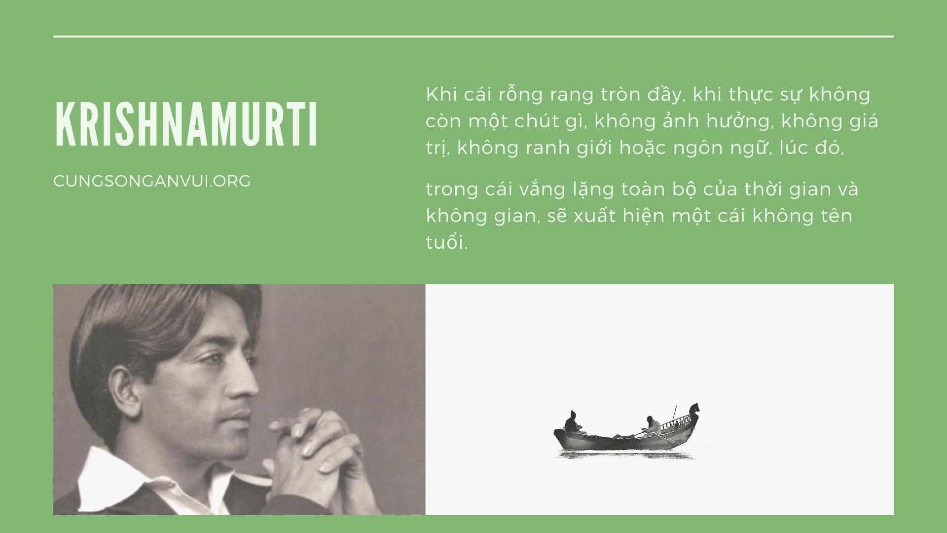 Đủ thứ động cơ lôi kéo chúng ta, mỗi hành vi đều có động cơ, và như thế ta không có tình yêu. Ta cũng không yêu thích nỗi việc chúng ta làm. Ta nghĩ rằng ta không làm gì được, hiện hữu hay sống không ý nghĩa, và biến đời ta thành buồn tẻ và tầm thường. Ta ỷ lại vào hoàn cảnh của mình để sở đắc một địa vị ; hoàn cảnh không phải là phương tiện để có được một cái gì. Tình yêu đối với chính sự vật thì không có, từ đó mọi sự đều không lợi lạc và tương giao là một việc làm đáng ngại. Trói buộc chỉ là một phương tiện che giấu tính phiến diện của chúng ta, nỗi cô độc, sự yếu kém của ta ; lòng ham muốn chỉ đưa đến hận thù. Tình yêu thì không có động cơ, và vì tình yêu vắng bóng nên đủ thứ động cơ len lỗi vào. Sống không động cơ, mục đích quả là khó; điều này đòi hỏi tính toàn vẹn chớ không phải sự tùy hợp với ý tưởng, đức tin. Sống toàn vẹn tức là tự biết mình mà không phải chỉ cốt làm thỏa ý, biết cái ta đang là từng sát-na.